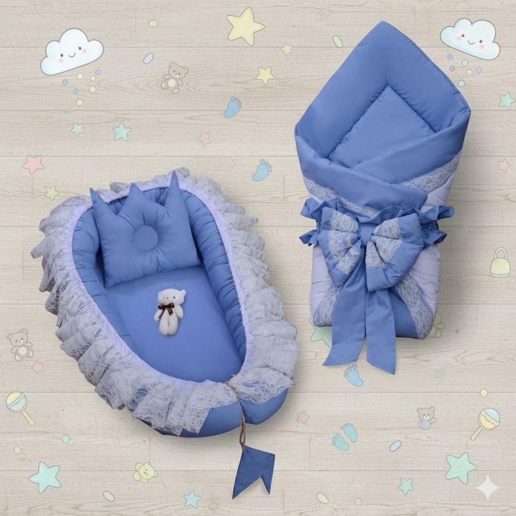 Luxury Cotton Baby Nest with Foldable Baby Sleeping Bag-Sky Blue