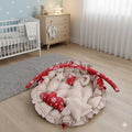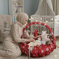 Printed Cotton Baby Round Cot with Pillows- Red Flowers