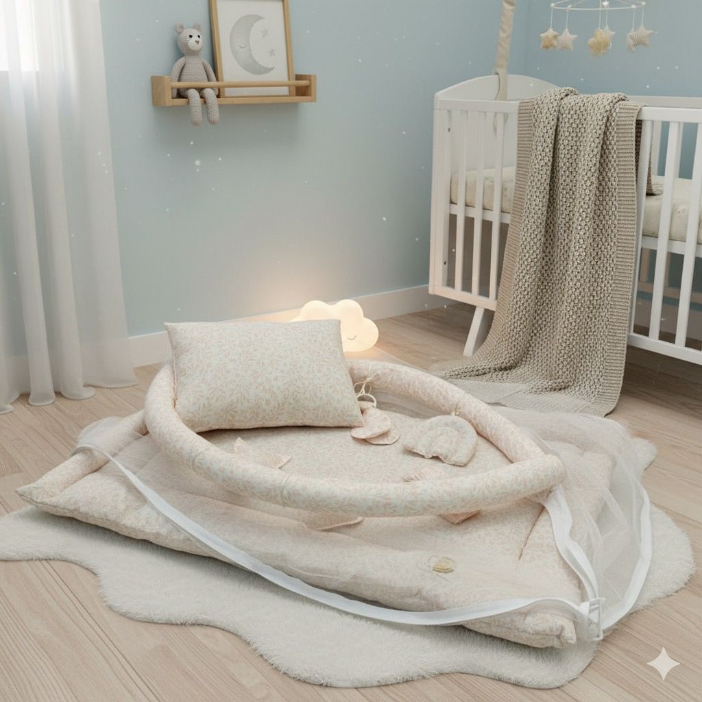 Baby Snuggle Mosquito Net with Pillow & Toy Hangings-Pink Floral