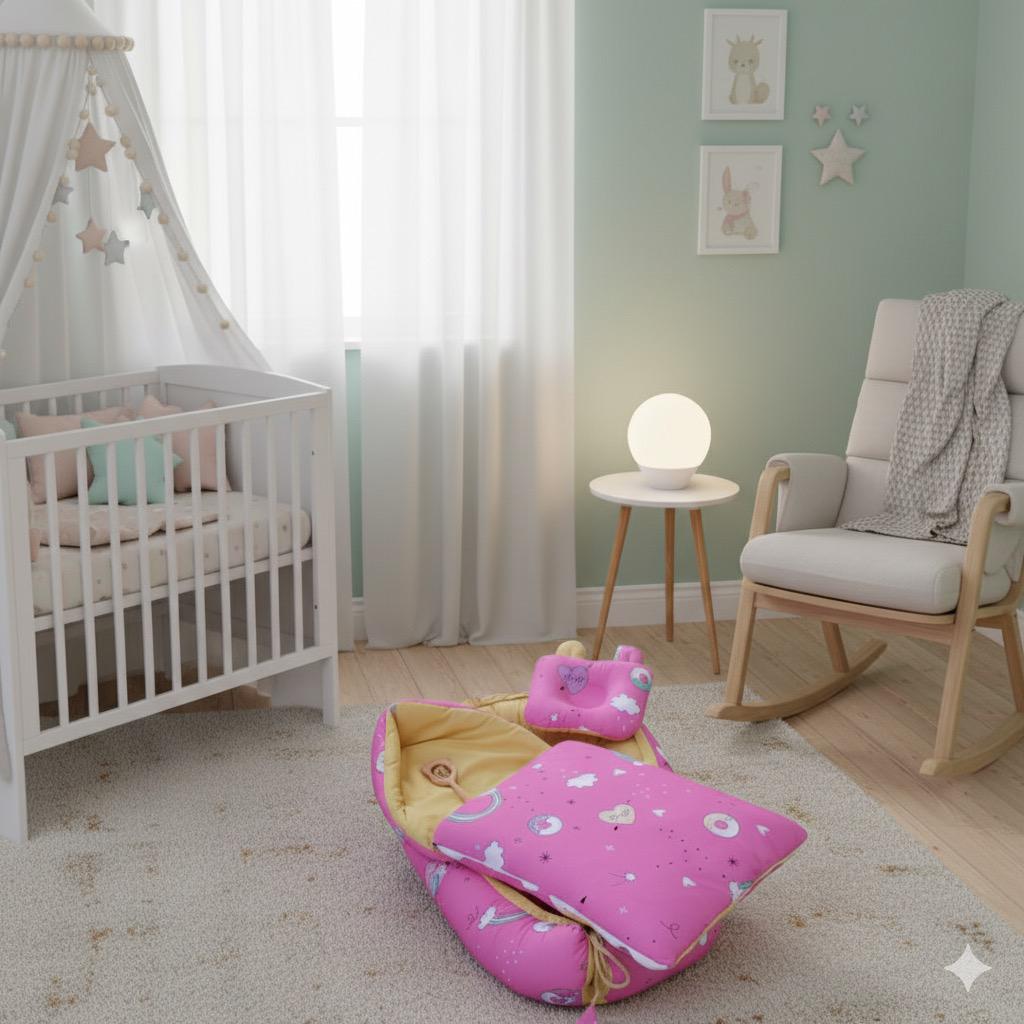 Cotton Baby Nest with Carry Nest- Pink Rainbow