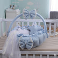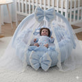 Luxury Baby Round Cot with Pillows and Net-Sky Blue & white