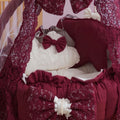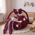 Luxury Cotton Baby Round Cot with Pillows & Net- Maroon & Off White