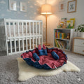 Printed Cotton Baby Round Cot with Pillows- Maroon Snow